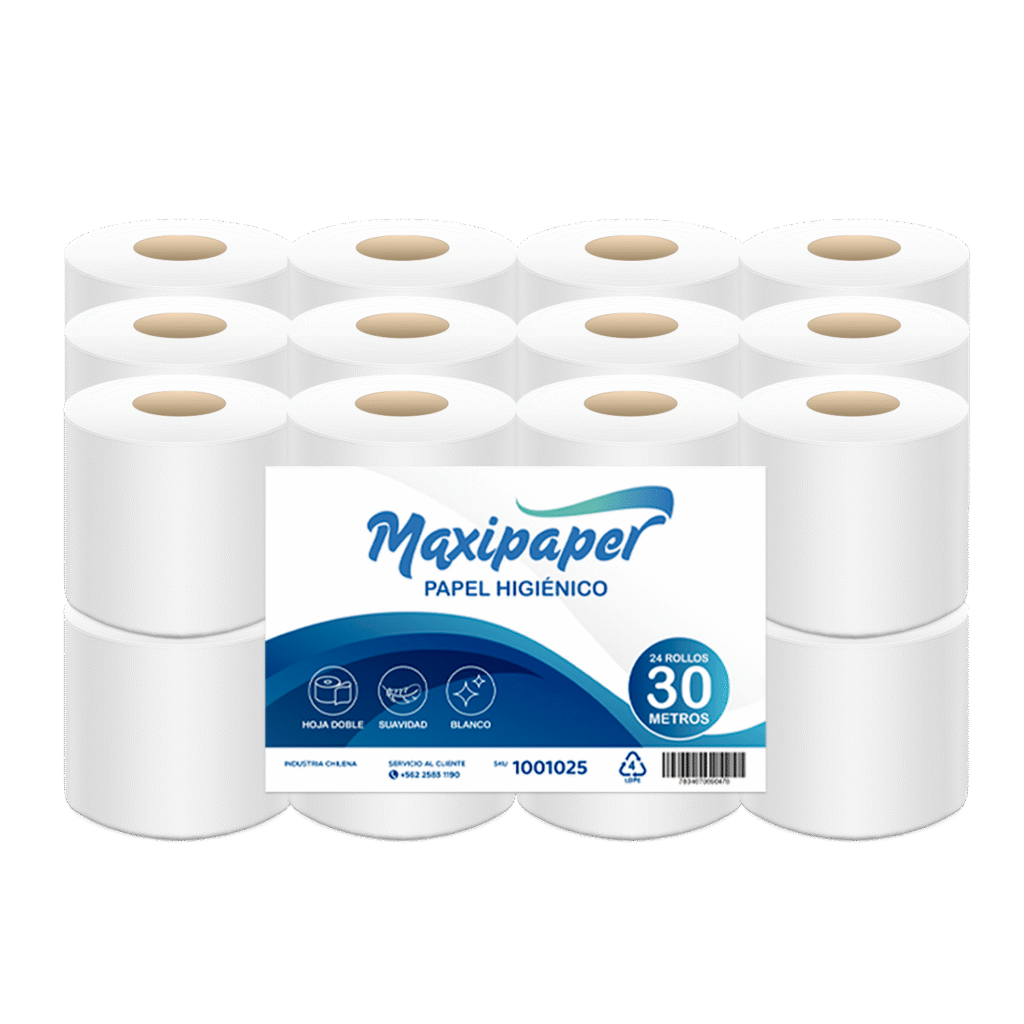 Papel Higiénico Bajo Metraje H/D Maxipaper 30 MT x 24 Rollos